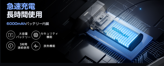 6000mAhのバッテリーを内蔵し、長時間使用を想定した設計になっています。